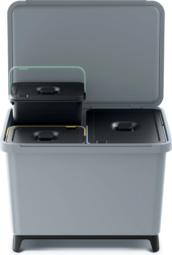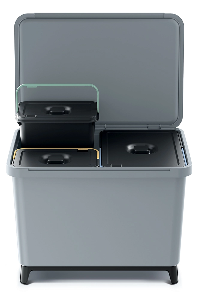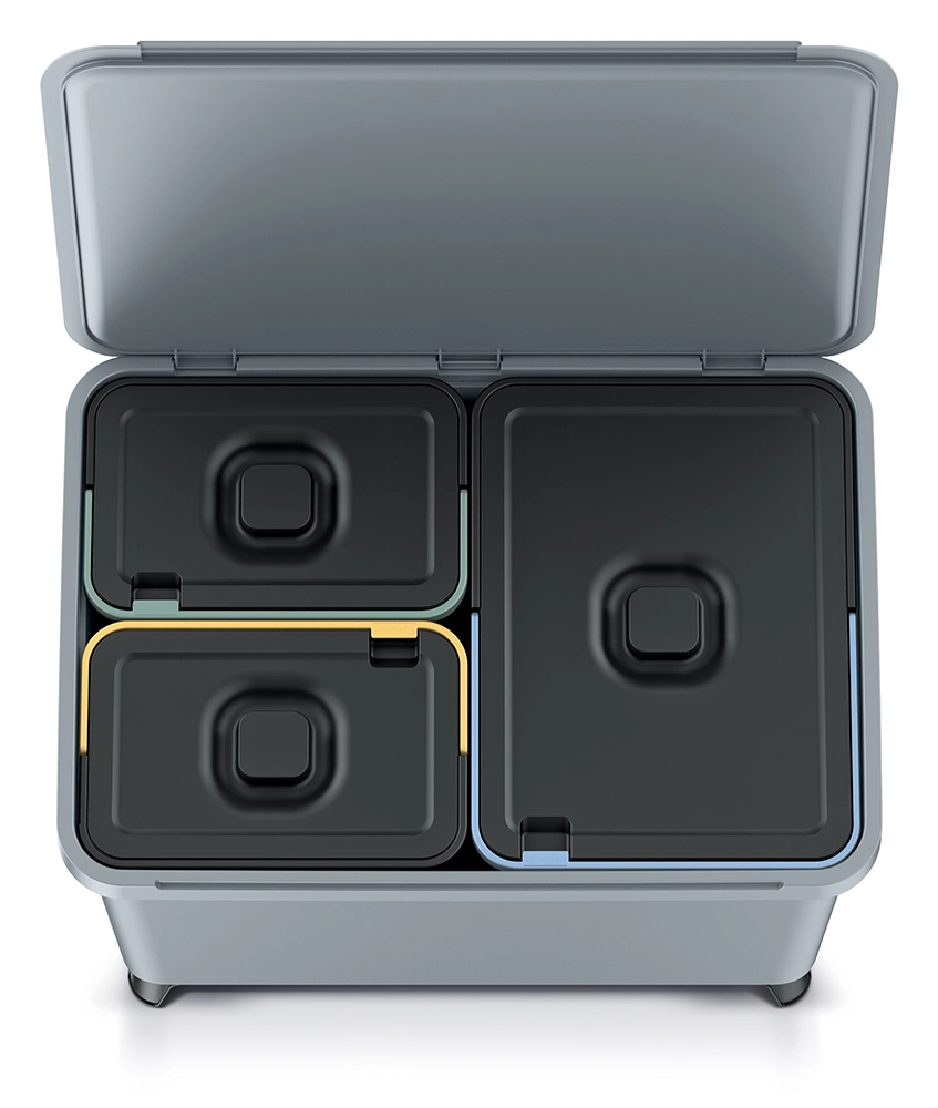 Egy 23 literes és két 10 literes tartály teszi lehetővé a különböző hulladéktípusok egy kukán belüli, egyértelmű szétválasztását.