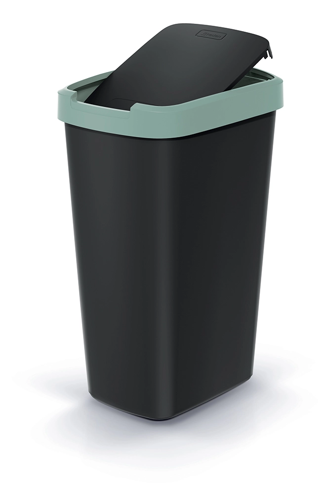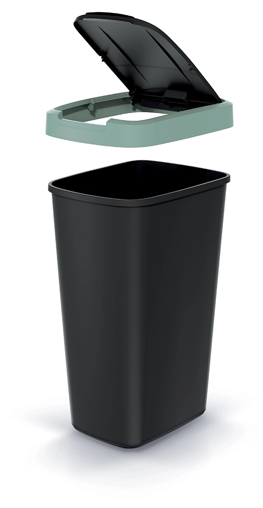 Elegáns, helytakarékos, 45 literes szemetes, ideális választás konyhába, irodába és kisebb terekbe. A matt fekete, tartós műanyag testet visszafogott, világoszöld perem egészíti ki, amely modern megjelenést ad és könnyen harmonizál az enteriőrrel.