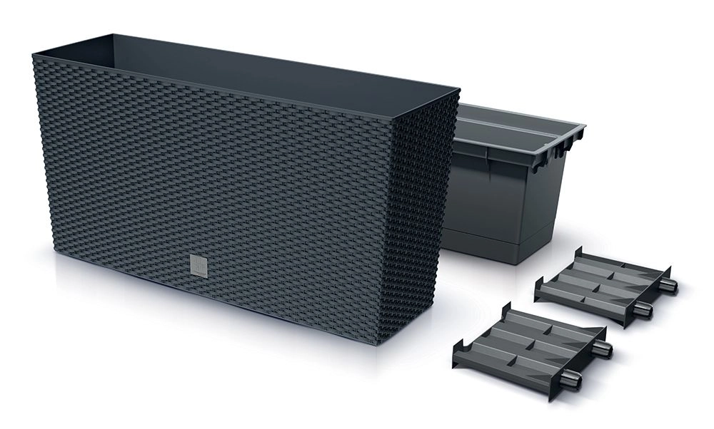 Elegáns balkonláda élethű rattan utánzattal antracit színben, amely stílust és praktikusságot ad növényeinek. Tartós műanyagból készült, UV-védelemmel, így egész éves használatra alkalmas beltéren és kültéren egyaránt. A csomag része egy praktikus belső betét az egyszerű ültetéshez és karbantartáshoz, valamint elegendő hely a gyökereknek virágokhoz, fűszernövényekhez vagy kisebb cserjékhez.