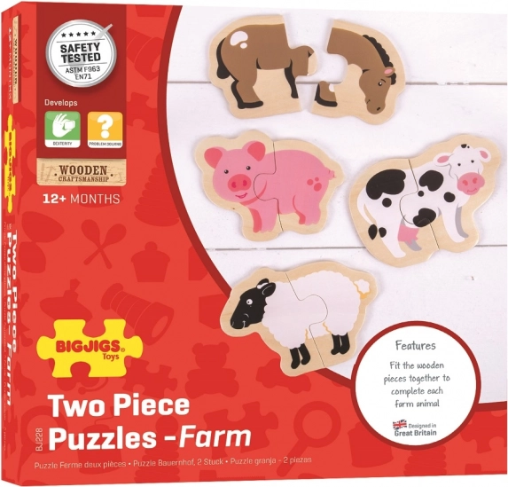 A kis játékosok el lesznek ragadtatva, ahogyan próbálják összeilleszteni ezeknek az egyszerű fa kirakók darabjait, hogy négy színes állatot alkossanak. Minden kirakót úgy terveztek, hogy fejlessze a gyerekek finommotorikáját, és tanítsa őket alak- és színfelismerésre. A gyerekeket bátorítják arra, hogy beszéljenek a kirakókról, amely szintén növeli szókincsüket és kommunikációs képességeiket.