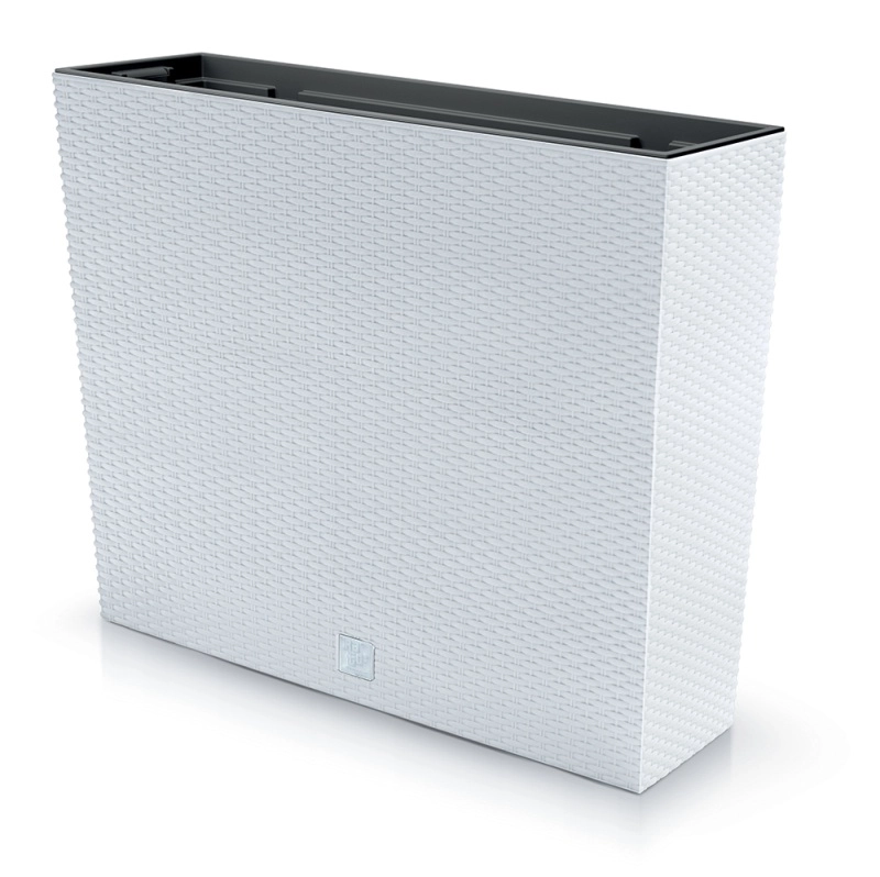 A fehér színű, magas Rato Case ültetőláda letisztult, friss hangsúlyt visz bármilyen térbe. A rattanfonatot idéző felület remekül illik a modern és természetes esztétikához egyaránt, míg a tartós műanyag alacsony tömeget és hosszú élettartamot biztosít kültéri használat mellett is.