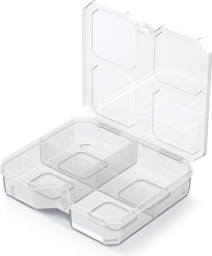 Praktikus és könnyű SQR rendszerező doboz apró alkatrészek, például csavarok, anyák vagy szegek tárolásához. 4 stabil rekeszt kínál az áttekinthető szétválogatáshoz, valamint átlátszó fedéllel rendelkezik a tartalom gyors vizuális ellenőrzéséhez. Kompakt méreteinek köszönhetően könnyen elfér szerszámosládában, táskában vagy szekrényben, tartós műanyaga pedig hosszú élettartamot garantál.