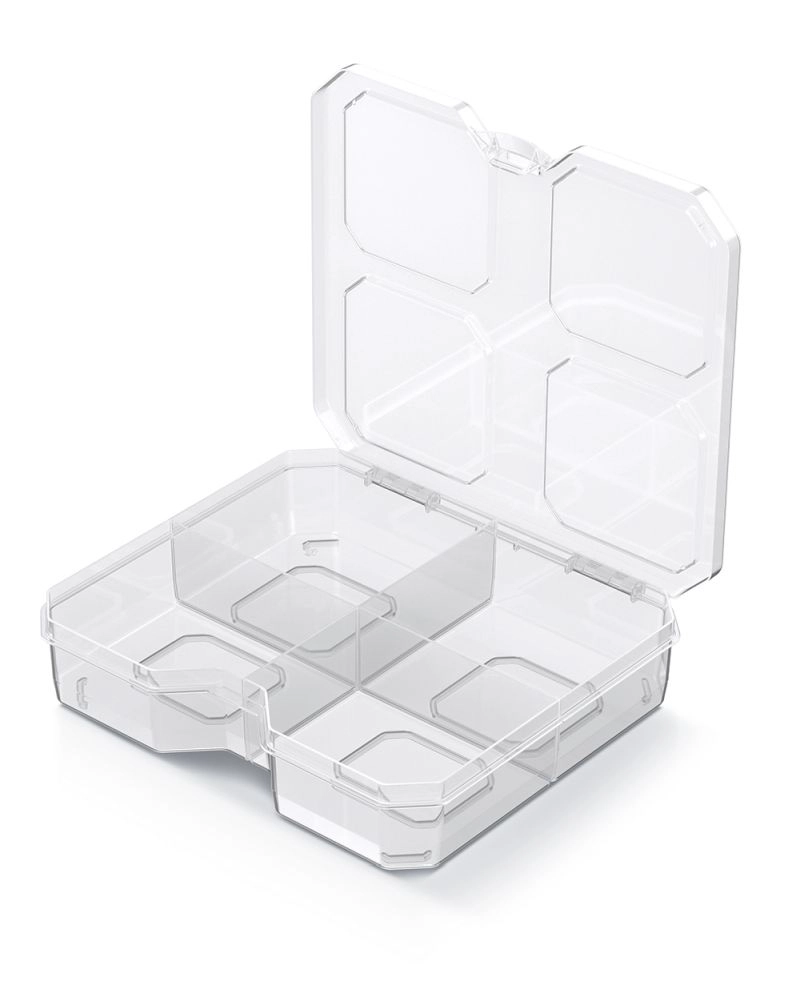 Műanyag SQR doboz 4 rekesszel, 15,6 × 14 × 3,5 cm, átlátszó