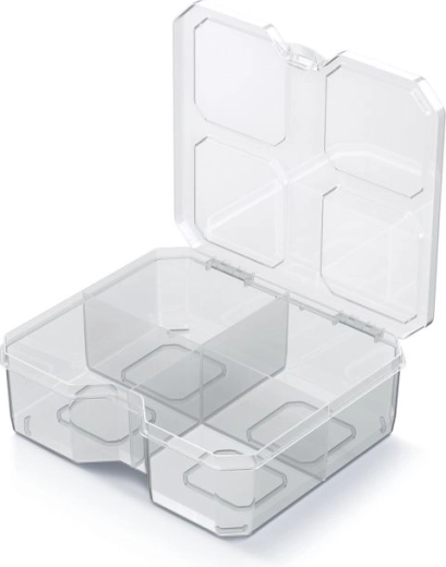 Tartsa rendben a dolgokat a kompakt SQR box rendezővel, amely ideális csavarok, szegek, irodai gemkapcsok és más apróságok szortírozásához. Az átlátszó fedél védi a tartalmat a portól és szennyeződésektől, és egyben azonnali rálátást biztosít.