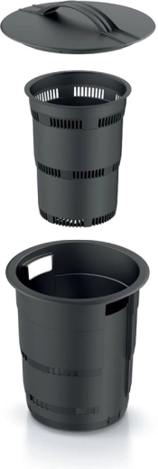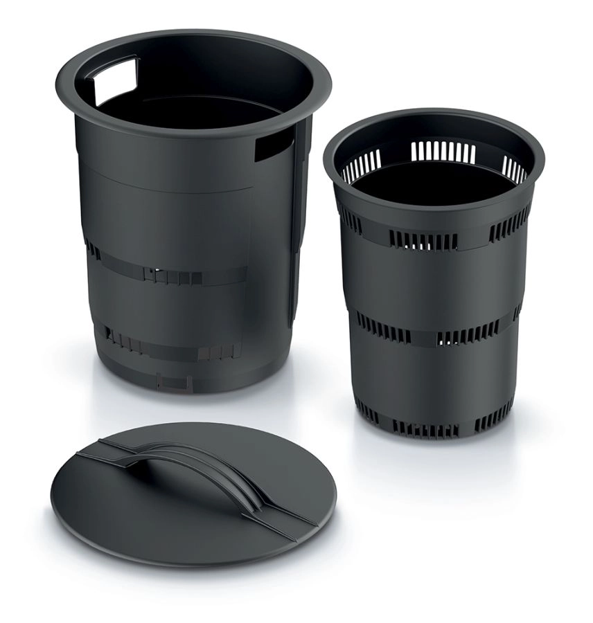 Kompakt, 25 cm-es magasságának és levehető fedelének köszönhetően a kezelése és utántöltése egyszerű. A robusztus műanyag ellenáll a nedvességnek és az időjárásnak, így a komposztáló egész évben gond nélkül használható. Alkalmas zöldség- és gyümölcshéjakhoz, kávézacc-hoz, apró növényi hulladékhoz és zúzott tojáshéjhoz.