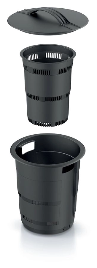 A Combiosoil föld alatti mini komposztáló okos megoldás a talaj helyi tápanyag-utánpótlására. Közvetlenül az ágyásba telepíthető, ahol a szerves maradékokat fokozatosan a talaj mikroorganizmusai és a giliszták bontják le. Az oldalsó perforáció optimális légáramlást és a tápanyagok közvetlen felszabadulását biztosítja a növények gyökereihez.