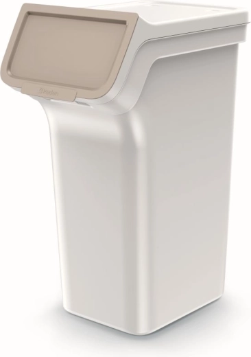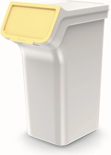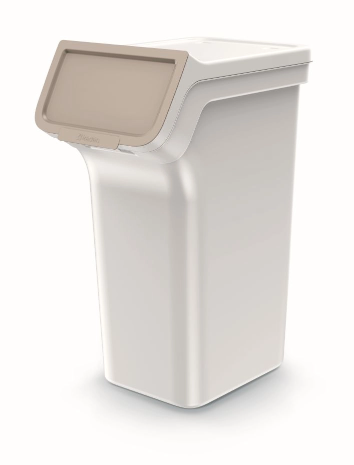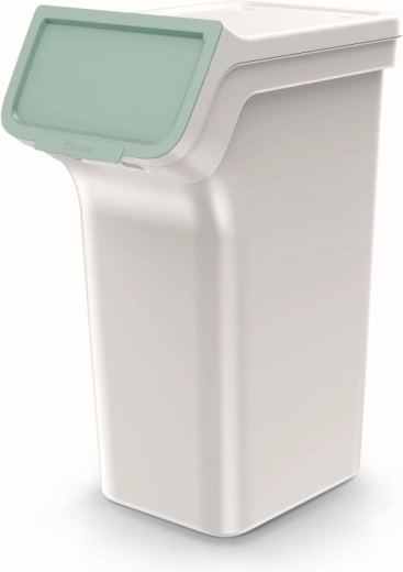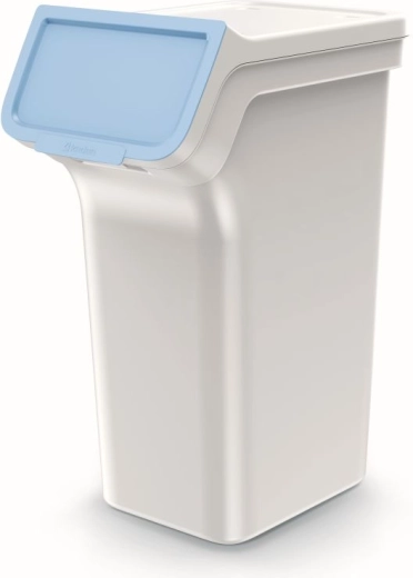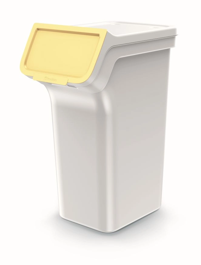 A 4 darab, egyenként 25 literes szelektív hulladékgyűjtőből álló készlet helyet takarít meg és növeli az áttekinthetőséget. A kosarak egymásra rakhatók vagy egymás mellé állíthatók, a kiugró elülső rész felnyíló fedéllel pedig könnyű hozzáférést biztosít még toronyrakás esetén is. A hamuszürke testet pasztellszínű fedelek egészítik ki az intuitív színkódoláshoz.