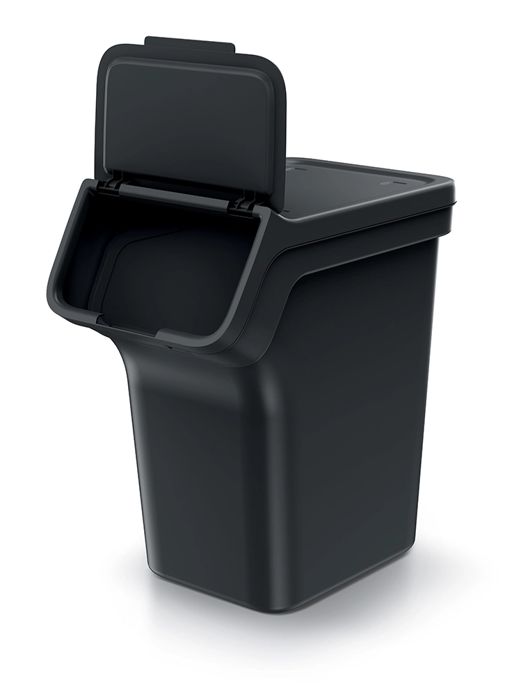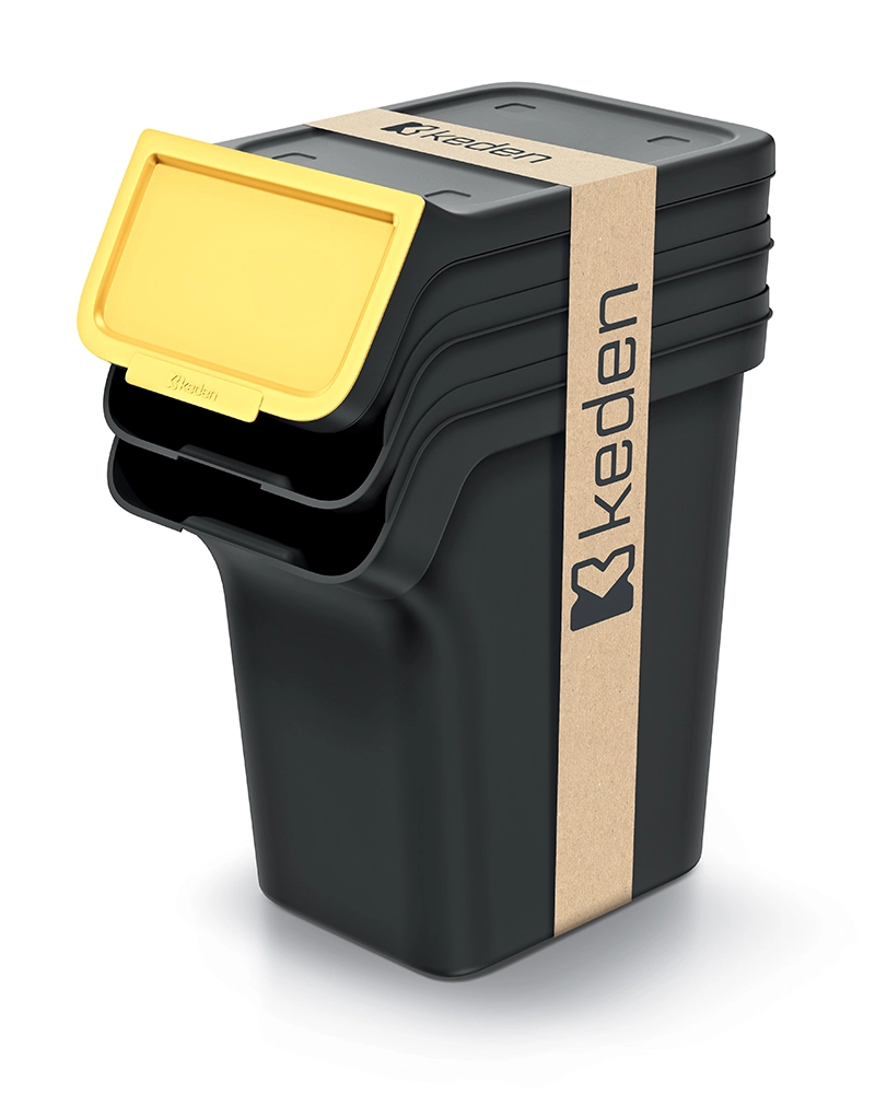 A KEDEN Stackbox szett okos, helytakarékos megoldást kínál a mindennapi szelektáláshoz. A három kompakt kuka biztonságosan egymásra rakható, a kiemelkedő elülső rész billenő fedelével pedig kényelmes a bedobás anélkül, hogy szét kellene szedni a tornyot. A fedél teljes felnyitás után fent marad, így mindkét keze szabadon marad.