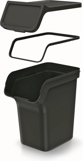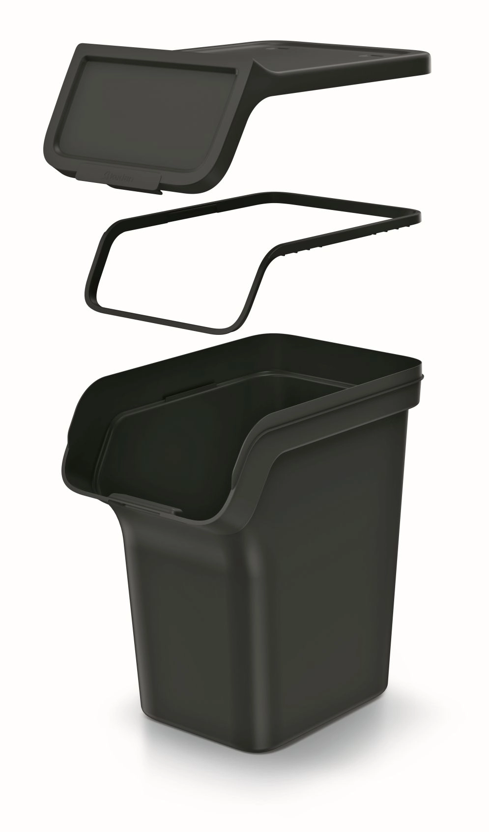 A kukák újrahasznosított műanyagból készülnek fekete színben, sima, könnyen tisztítható felülettel, amely ellenáll az alkoholoknak, zsíroknak és olajoknak. A levehető zsáktartó keret stabilan rögzíti a zsákokat és megkönnyíti a cserét. Modern megjelenése és moduláris felépítése otthonokba, irodákba és közösségi terekbe is illik.