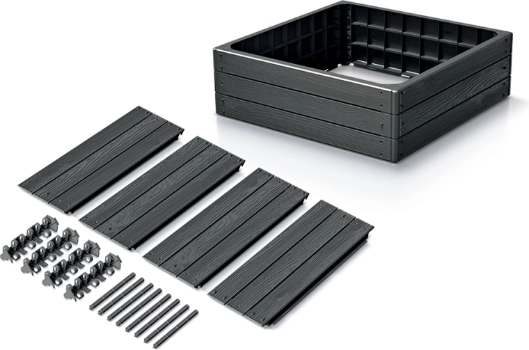 Alakítson ki áttekinthető és termékeny ágyásokat a kert bármely pontján. A BASE WOODY megemelt ágyás élethű fa megjelenésével tűnik ki, mégis tartós műanyagból készül, amely nem rozsdásodik, nem korhad és nem igényel festést. A megemelt kialakítás javítja a vízelvezetést, csökkenti a kártevők előfordulását és kíméli a hátat munka közben.