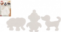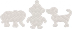 A Hama alátétek készlete lehetővé teszi a 5 éves kortól gyerekek számára, hogy színes képeket készítsenek fehér műanyag alátétekkel, melyek elefánt, pingvin és kutyus alakúak.