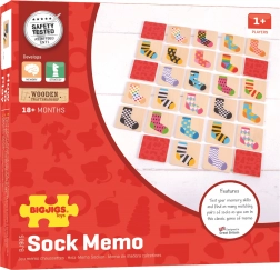 Gazdagítsa a gyerekekkel töltött játékidőt fa memóriakártya zoknikkal. Ez a játék serkenti a memóriát, támogatja a koncentrációt és a stratégiai képességek fejlesztését. Csak helyezze le a 32 fa játékelemet lefelé fordítva, és kezdje el egyszerre két darabot felfedni. A nehézség fokozatosan nő, a játékosok megpróbálják párosítani a zoknikat és elsajátítani új stratégiákat.