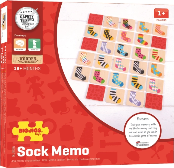 A játékot az nyeri, aki a végén a legtöbb páros zoknival rendelkezik. A szórakozás azonban nem ér véget itt, mert a memóriakártya az interaktív játékot is támogatja más gyermekekkel, bővítve szókincsüket. Kiváló minőségű fából készült, amely megfelel az európai biztonsági normáknak.