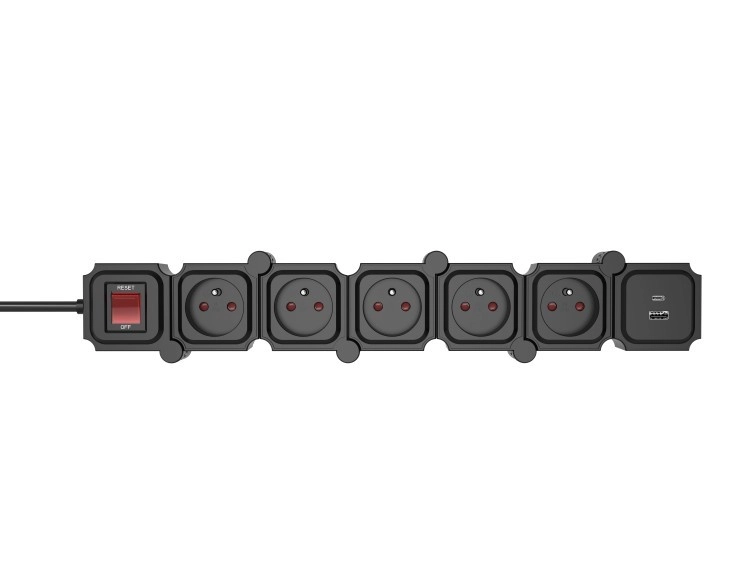 Okos, moduláris hosszabbító öt kimenettel és integrált USB-A/USB-C gyorstöltéssel, amely maximális rugalmasságot, biztonságos használatot és kényelmes áramellátást kínál több eszközhöz egyszerre. A forgatható szegmenseknek köszönhetően könnyen a sarkokhoz és szűk helyekhez igazítható, miközben a kapcsolóval ellátott kismegszakító véd a túlterheléstől.