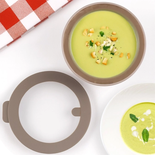 A BPA-mentes anyag -25 °C és +95 °C között ellenálló. A tál fagyasztható, mikróban melegíthető, és használat után mosogatógépben tisztítható.