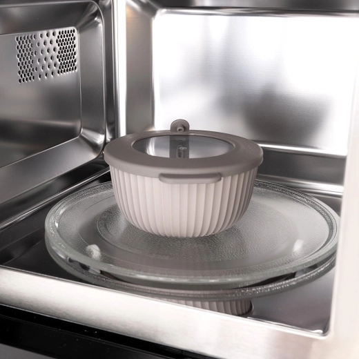 A fedélbe integrált szelep biztonságos melegítést tesz lehetővé a mikrohullámú sütőben fröcskölés nélkül. A szilikon tömítés segít megőrizni a frissességet és megakadályozza a folyadékszivárgást.
