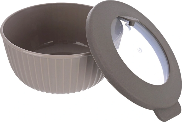 A fedél középső, átlátszó része lehetővé teszi a tál tartalmának ellenőrzését anélkül, hogy ki kellene nyitni, így az étel melege és illata megmarad.