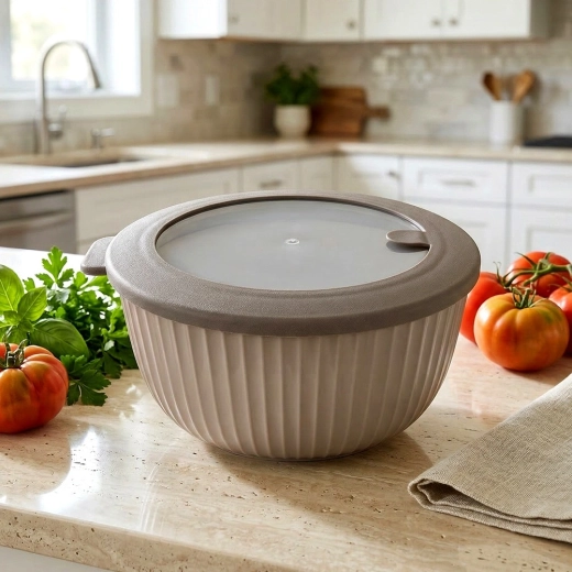 - Beige tál, szürke/átlátszó fedő