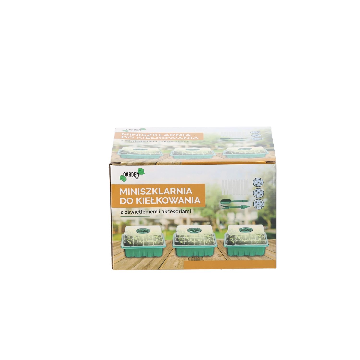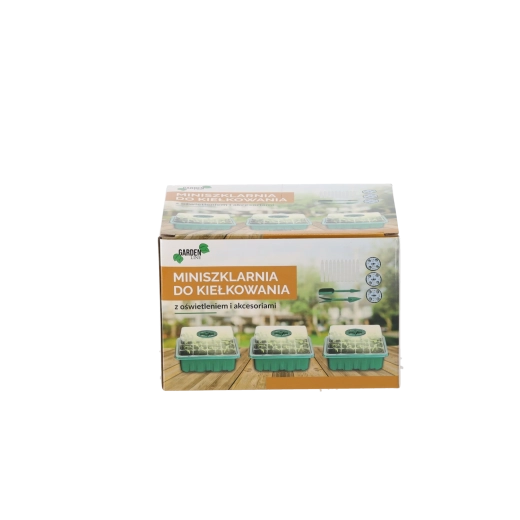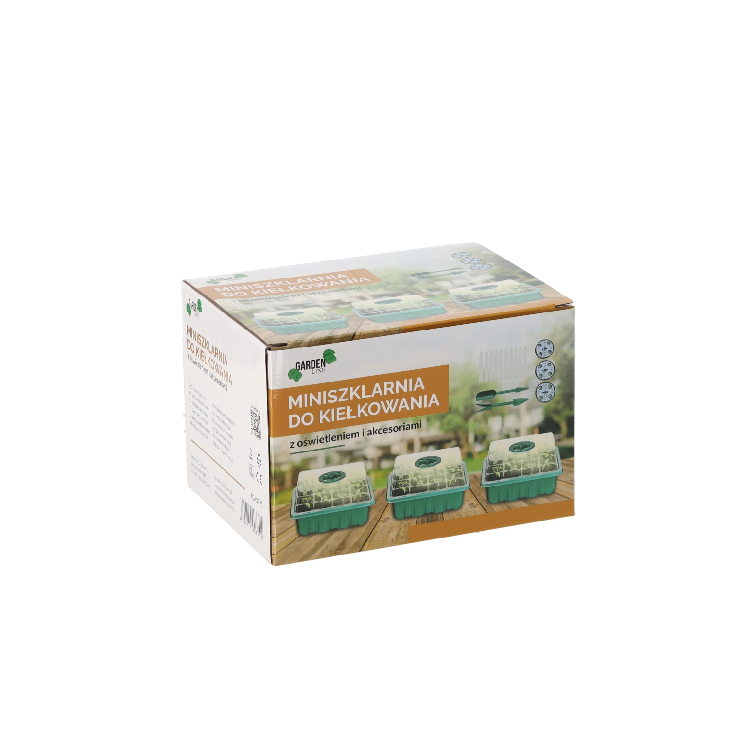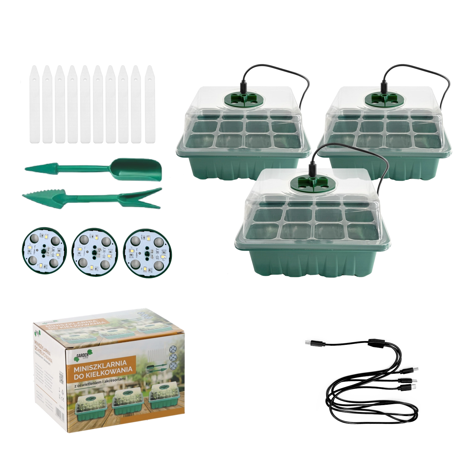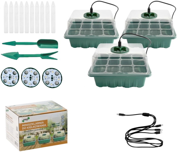 3 darabos mini üvegház készlet csíráztatáshoz, LED világítással, 12 rekesszel