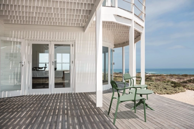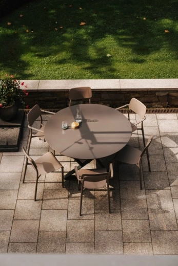 Az integrált karfák és az ergonomikusan formázott ülés támogatják a helyes testtartást és hosszabb ülés közben is kényelmet biztosítanak – ideális étkezőasztalhoz és teraszra egyaránt.