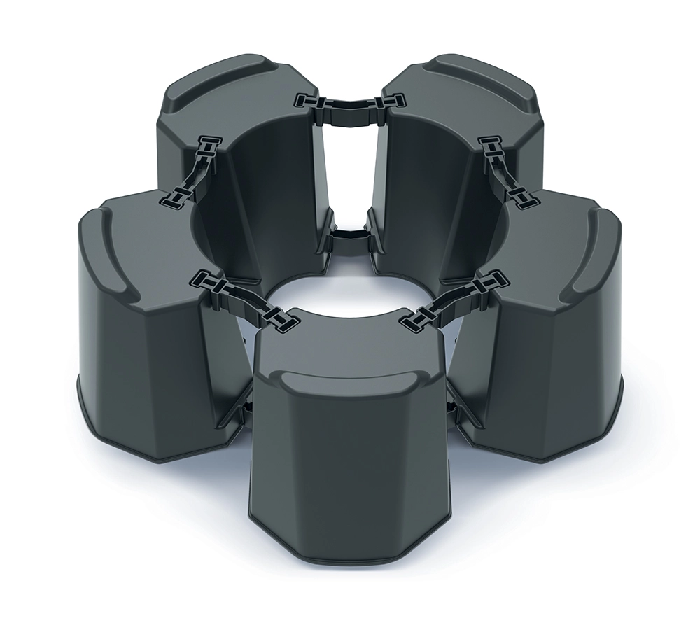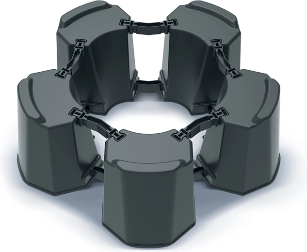 A praktikus szegmenseknek és csatlakozóknak köszönhetően könnyedén beállíthatja az állvány átmérőjét a hordó méretéhez. Az időjárás- és UV-álló, tartós műanyag hosszú élettartamot nyújt, minimális karbantartási igénnyel.