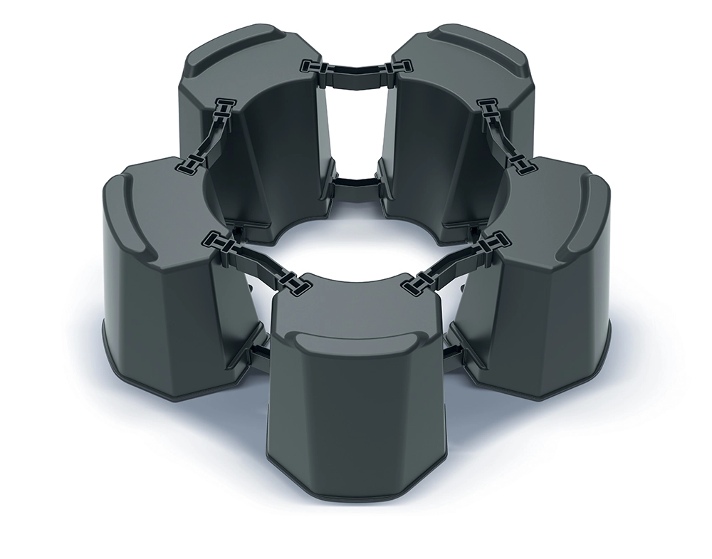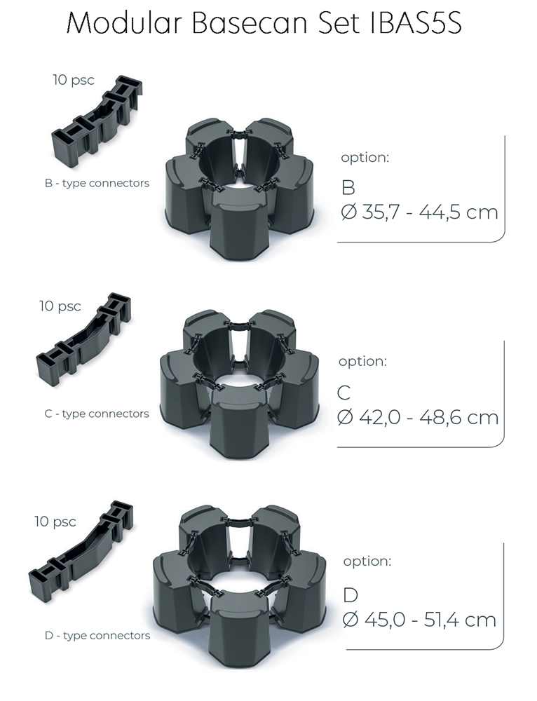 A szegmensek és cserélhető csatlakozók lehetővé teszik, hogy az állvány átmérőjét pontosan a hordó méretéhez állítsa. Egyszerűen adjon hozzá vagy vegyen el modult, és válassza ki a megfelelő típusú csatlakozókat.