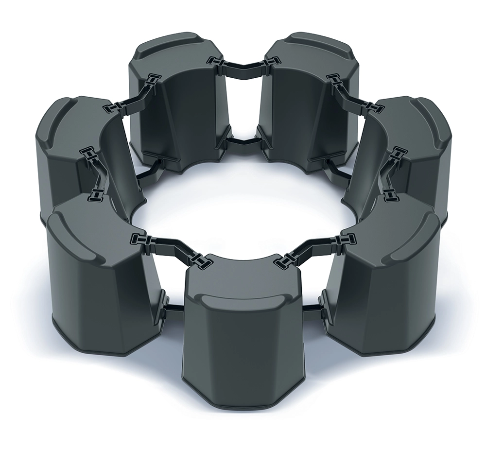 A 6 vagy 7 modulból álló szerelési lehetőség révén egyszerűen választható ki a megfelelő méret a konkrét tartályhoz. A hordó megemelt pozíciója megkönnyíti a vízkezelést és csökkenti a környezet elszennyeződésének kockázatát.