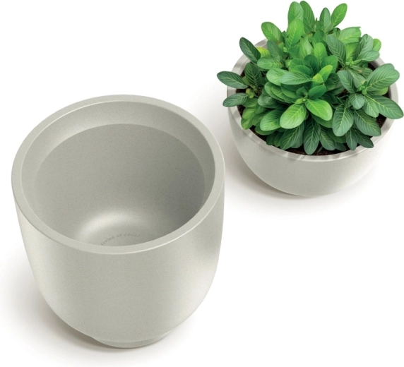 A homokszínű Vemo Round Midl virágtartó letisztult dizájnt ötvöz a mindennapi használatot segítő praktikus tulajdonságokkal. A matt felület és a finoman lekerekített vonalak elegáns hatást keltenek bármely térben, míg a tartós műanyag ellenáll a napfénynek, az esőnek és a hőmérséklet-ingadozásoknak.