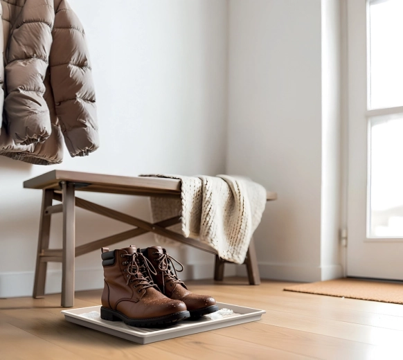 Használhatja nedves cipők csepegtetőjeként, stabil alapként az etető- és itatótálak alá, vagy tiszta munkafelületként növények átültetésekor. Univerzális kialakításának köszönhetően különféle enteriőrökhöz illik, és segít rendet tartani.
