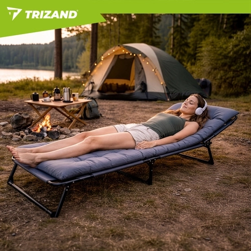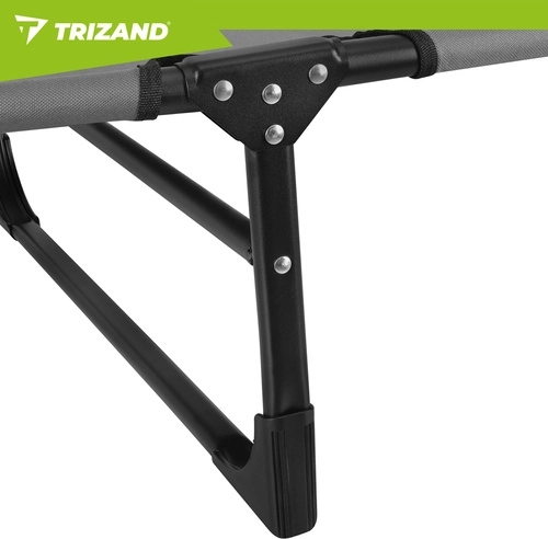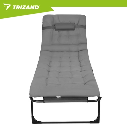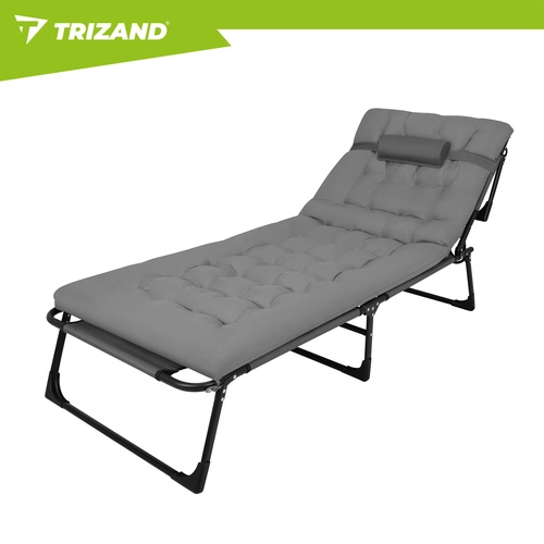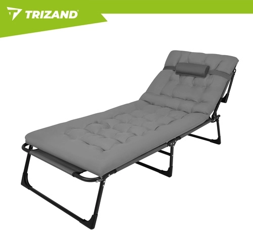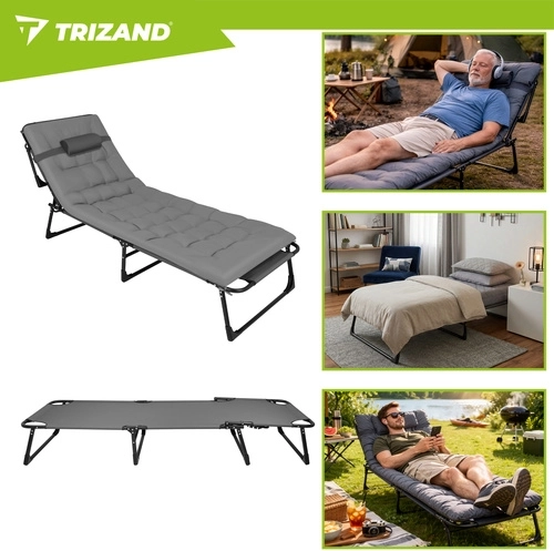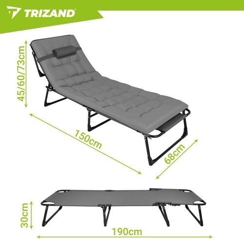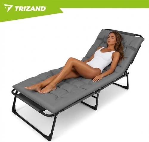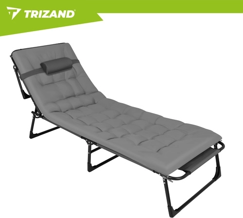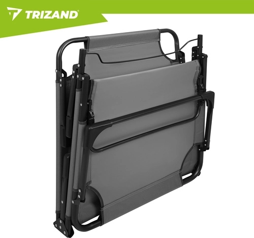A praktikus, összecsukható TRIZAND napozóágy a napozóágy kényelmét a kempingágy funkcionalitásával ötvözi. A 4 fokozatban állítható háttámla és az állítható lábtartó ideális pozíciót biztosít olvasáshoz, napozáshoz és délutáni sziesztához. A vastagon párnázott matrac fejtámasszal lágy alátámasztást ad a teljes testhosszon.