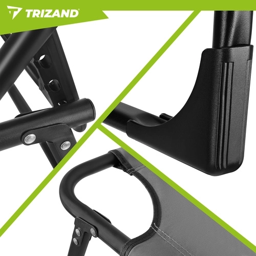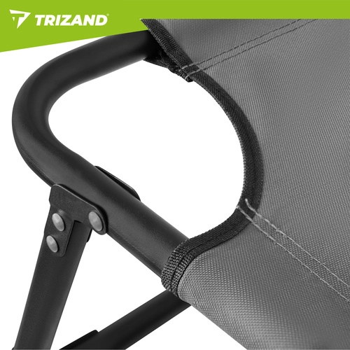 Élvezze a pihenést a kertben, a teraszon vagy a strandon a TRIZAND napozóággyal. 4 állítható háttámla-pozíciót, összecsukható lábtartót és puha, párnázott matracot levehető párnával kínál. A masszív, 4 lábú acélszerkezetnek köszönhetően akár 120 kg-ot is elbír, könnyen tisztítható (Oxford szövet), és gyorsan összecsukható szállításhoz.