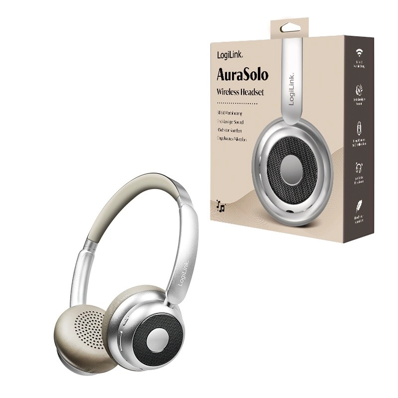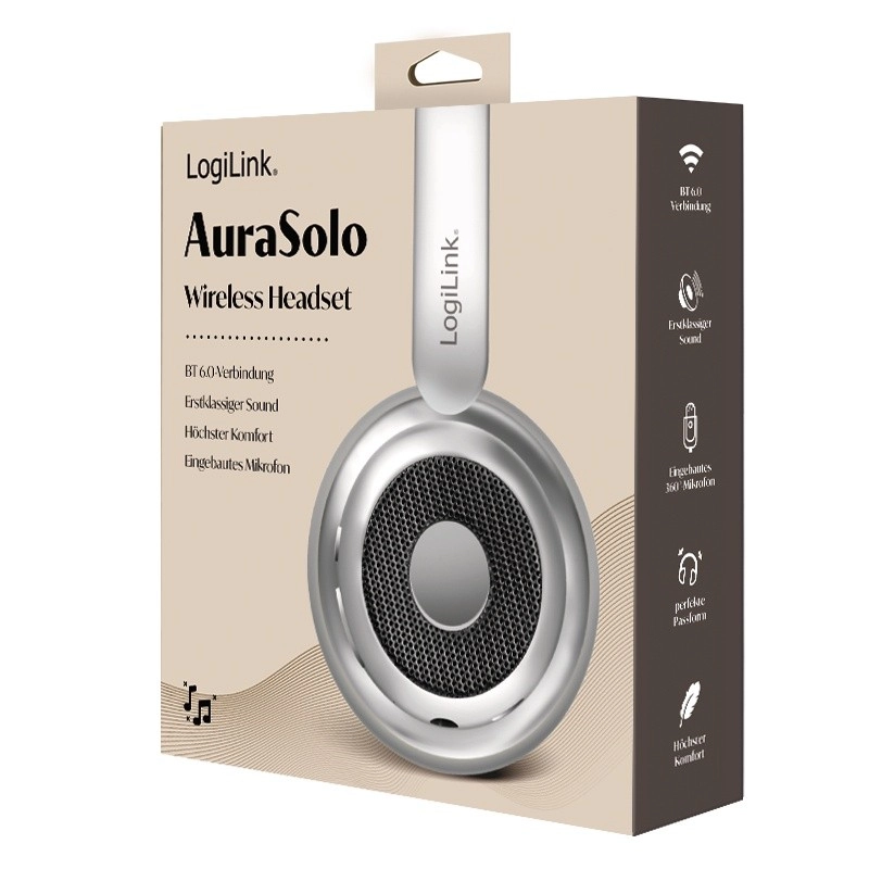 A LOGILINK AuraSolo fejhallgató elegáns ezüst kivitelét praktikus funkciókkal ötvözi munkához, utazáshoz és pihenéshez. A Bluetooth 6.0 megbízható vezeték nélküli kapcsolatot kínál, szükség esetén pedig 3,5 mm-es audiokábellel is csatlakozhat. Az aktív zajszűrés (ANC) segít a zenére vagy munkára összpontosítani zajos környezetben is.