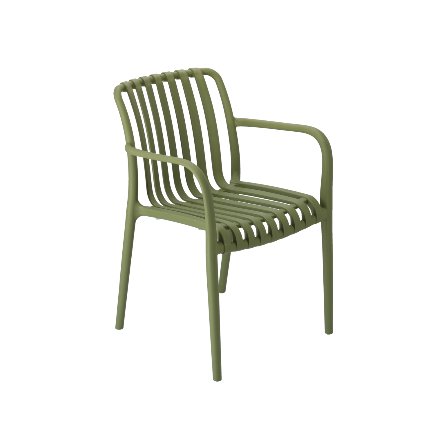 Ez a zöld kerti szék remek választás a kültéri pihenéshez. A UV-szűrőnek köszönhetően hosszú távon megőrzi színét és megjelenését, ellenáll az esőnek és a napnak, és bírja a mindennapi használatot. Könnyű szerkezete megkönnyíti a mozgatást és a tárolást.