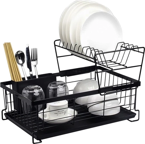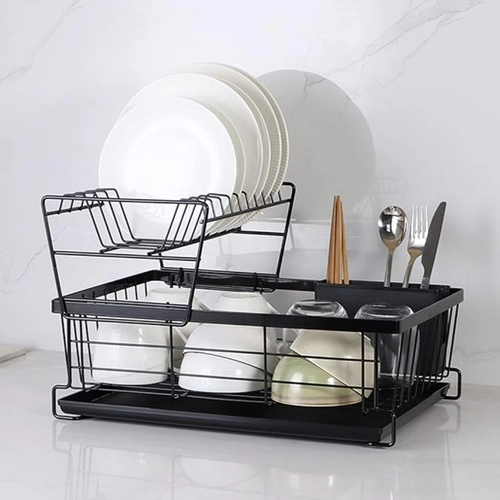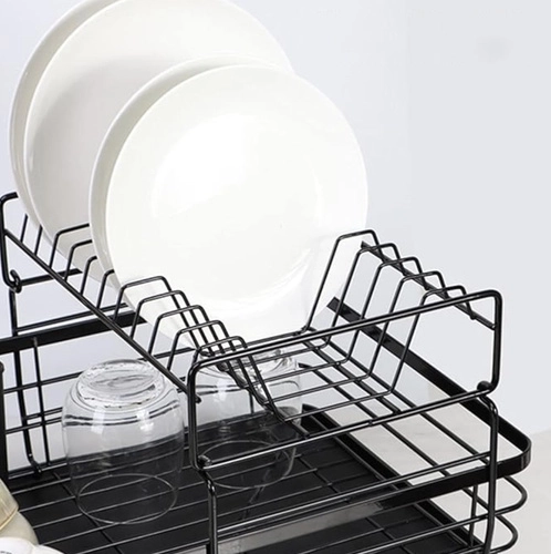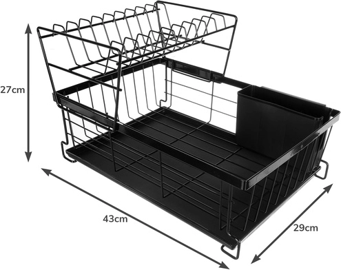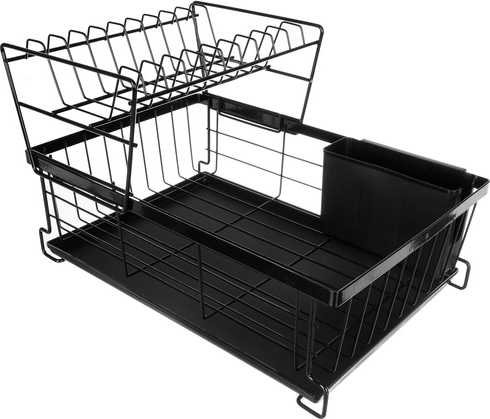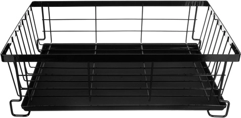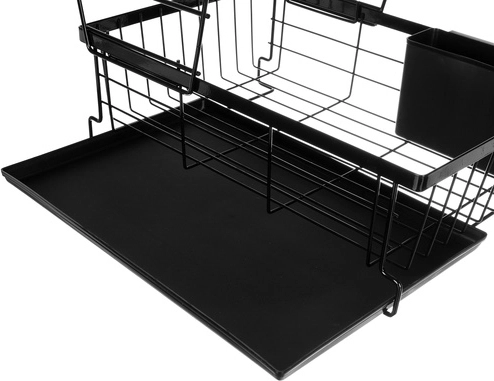Az nyitott huzalkosaras kialakítás gyors légáramlást és ezáltal gyorsabb száradást biztosít. A masszív fém váz teljes terhelés mellett is stabilitást nyújt, míg a fekete, loft stílusú kivitel modern megjelenést ad a konyhának. Egyszerű karbantartás – a tálcát és a kosarat könnyen kiveheti és leöblítheti.