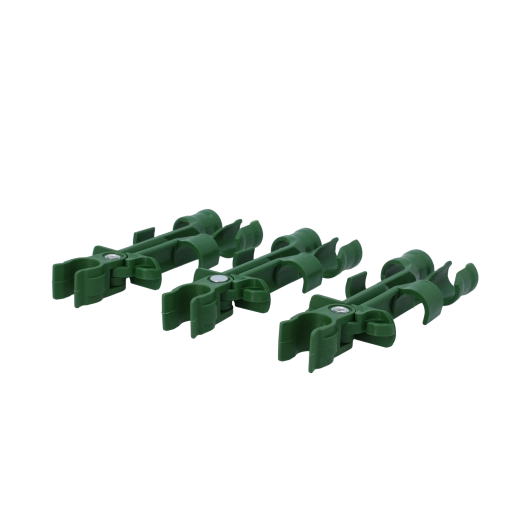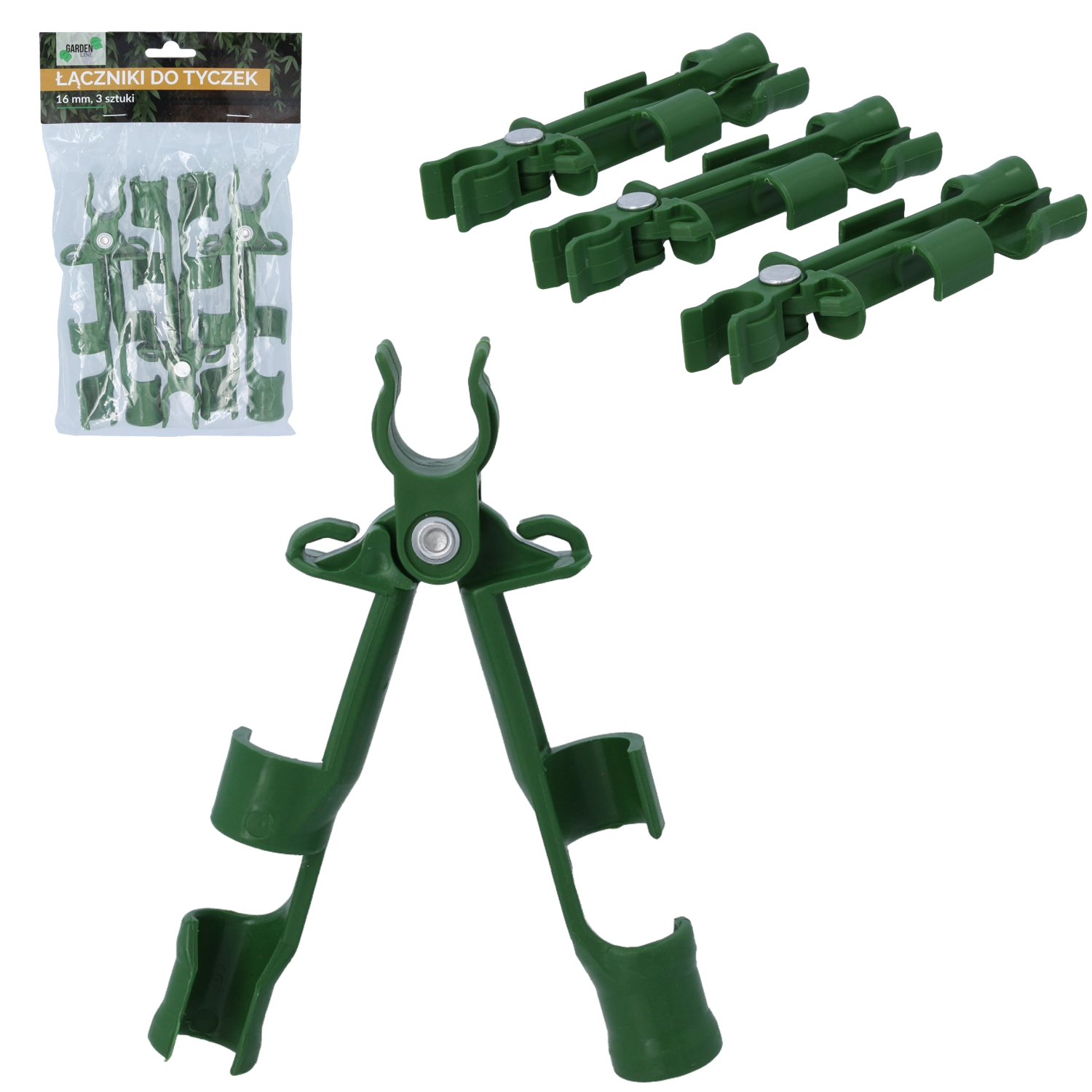 A csatlakozók stabilan rögzítik a 16 mm-es támaszrudakat, így a szerkezet szélben és a növények terhelése mellett is stabil marad.