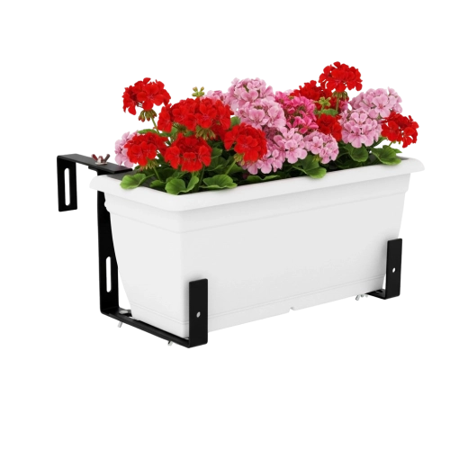 A robusztus fém tartó szélben is stabilan a helyén tartja a virágládákat. Ideális erkély- és teraszkorlátokra.