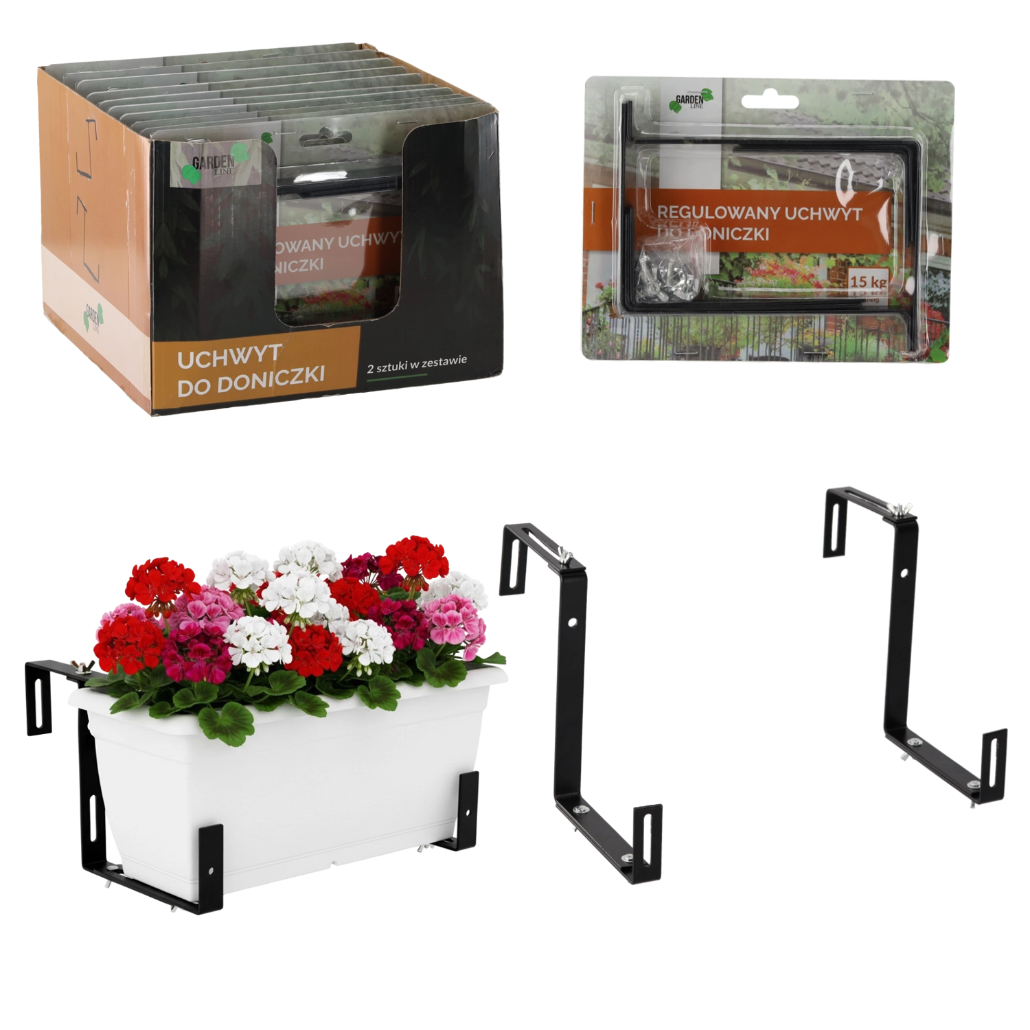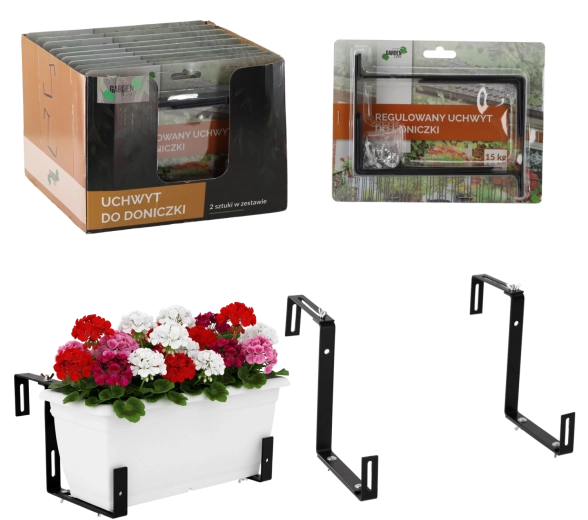 Két darab állítható ládatartó praktikus készlete a balkonra, teraszra vagy korlátra való biztonságos rögzítéshez. A univerzális befogási szélességnek köszönhetően könnyen alkalmazkodik a különböző korláttípusokhoz. A masszív fémkonstrukció és az átgondolt kialakítás stabilitást, hosszú élettartamot és elegáns megjelenést biztosít a kültéri térnek. Könnyű szerelés speciális szerszám nélkül.