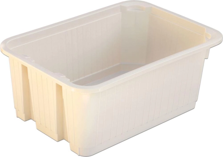 A sima belső falak gyorsan tisztíthatók, az ergonomikus peremek pedig kényelmes hordozást tesznek lehetővé. A színmix (fehér, rózsaszín, kék, zöld, bézs, szürke) megkönnyíti a vizuális szortírozást és egységesíti a tárolórendszer megjelenését.