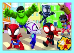 Gyermekeknek szóló 4 az 1-ben puzzle készlet MARVEL Spidey and His Amazing Friends motívumokkal – szórakoztat és fejleszt 3 éves kortól. A különböző nehézségi szintek (12, 15, 20 és 24 darab) támogatják a finommotorika, a logikus gondolkodás és a türelem fejlődését. A minőségi kidolgozás és az ökológiai anyagok biztonságos, tartós szórakozást biztosítanak.