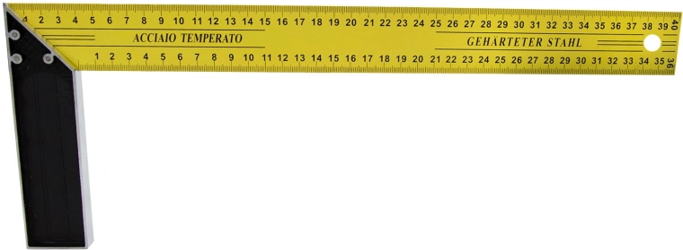 Megbízható 400 mm-es asztalos derékszög faipari munkákhoz, szereléshez és derékszögek ellenőrzéséhez. A lemez vonalzó és a lakkozott mérőkar milliméteres skálával pontosságot és hosszú élettartamot biztosít.