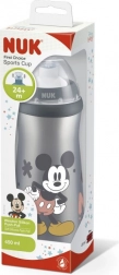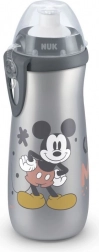 A NUK FC sportkulacs Mickey Egér mintával 3 éves kortól ajánlott. Ez a praktikus kulacs nem csöpögő push-pull kifolyóval van felszerelve, amely könnyen használható és biztonságos. A palack praktikus fedéllel rendelkezik, amely higiénikusan tartja a kifolyót, és klipsszel van ellátva, mellyel rögzíthető hátizsákhoz vagy övhöz.