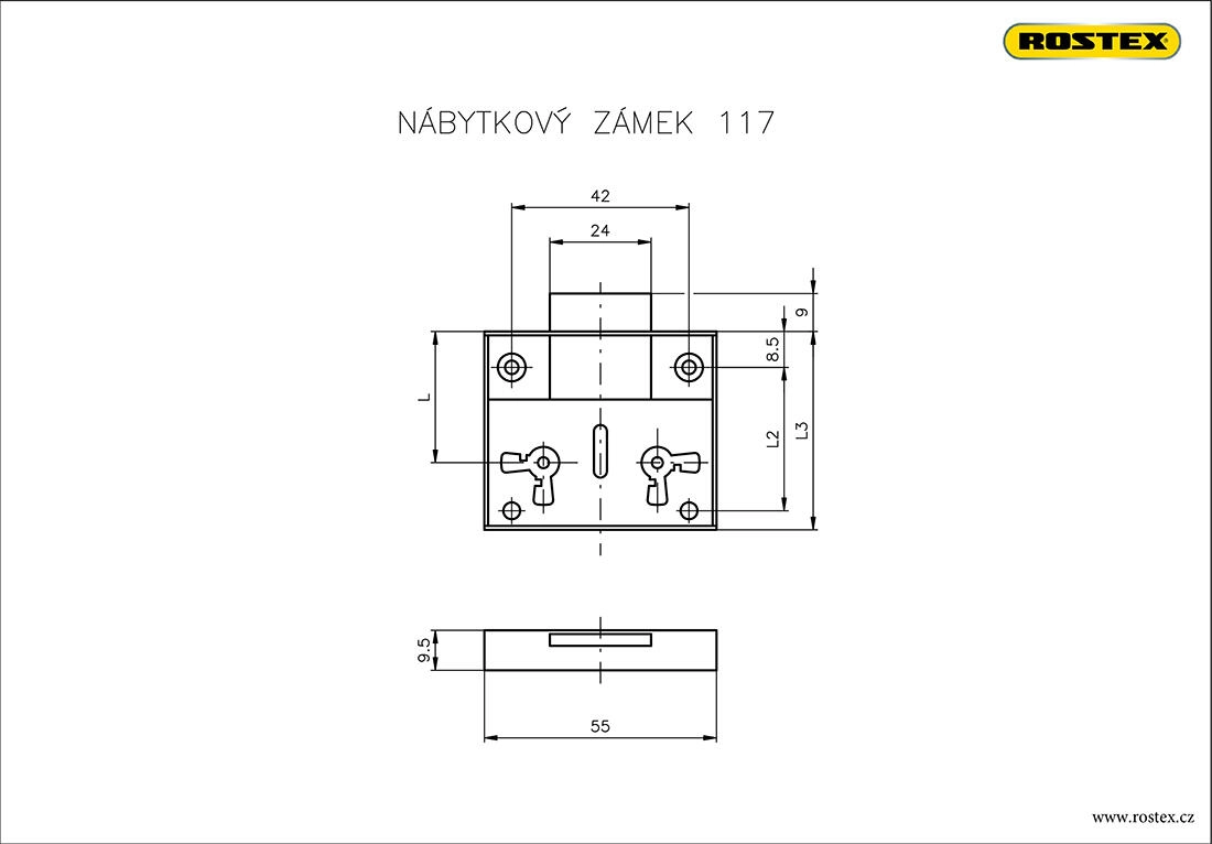 Univerzális bútorzár 117/30 hagyományos kulccsal szekrények, szekrényajtók és fiókok biztonságos lezárásához. Kínál jobb és bal oldali felhasználást, egyszerű szerelést és megbízható zárást a bútorajtókhoz és fiókokhoz.