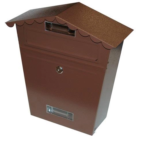 A praktikus, tetővel ellátott, elegáns barna színű postaláda megbízható védelmet nyújt levelezésének. A 290 × 360 × 105 mm kompakt méreteknek köszönhetően családi házakhoz és kisebb ingatlanokhoz egyaránt alkalmas. Az előlapon bedobónyílás és levélkivételi nyílás található, továbbá biztonsági zárral van felszerelve.