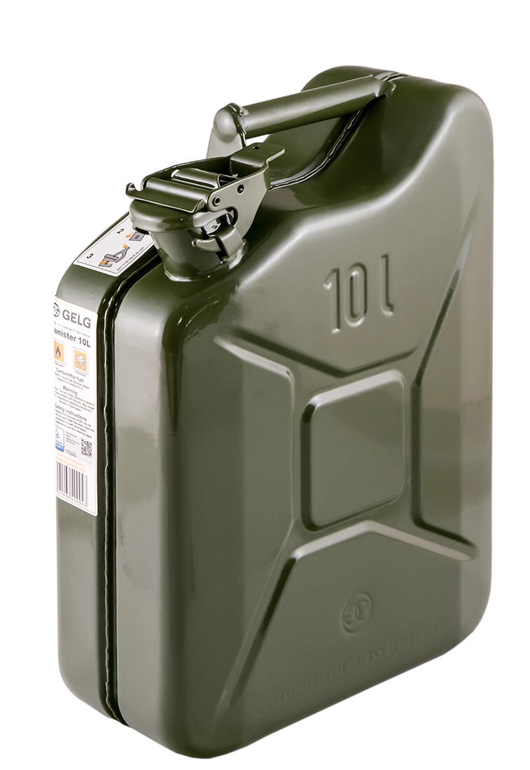 Univerzális, 10 literes fémkanna biztonságos benzin, gázolaj és olaj tárolásához és szállításához. Tartós, festett lemezből készült kivitel és praktikus fogantyú a kényelmes kezelhetőségért műhelyben, szervizben és a kertben is.