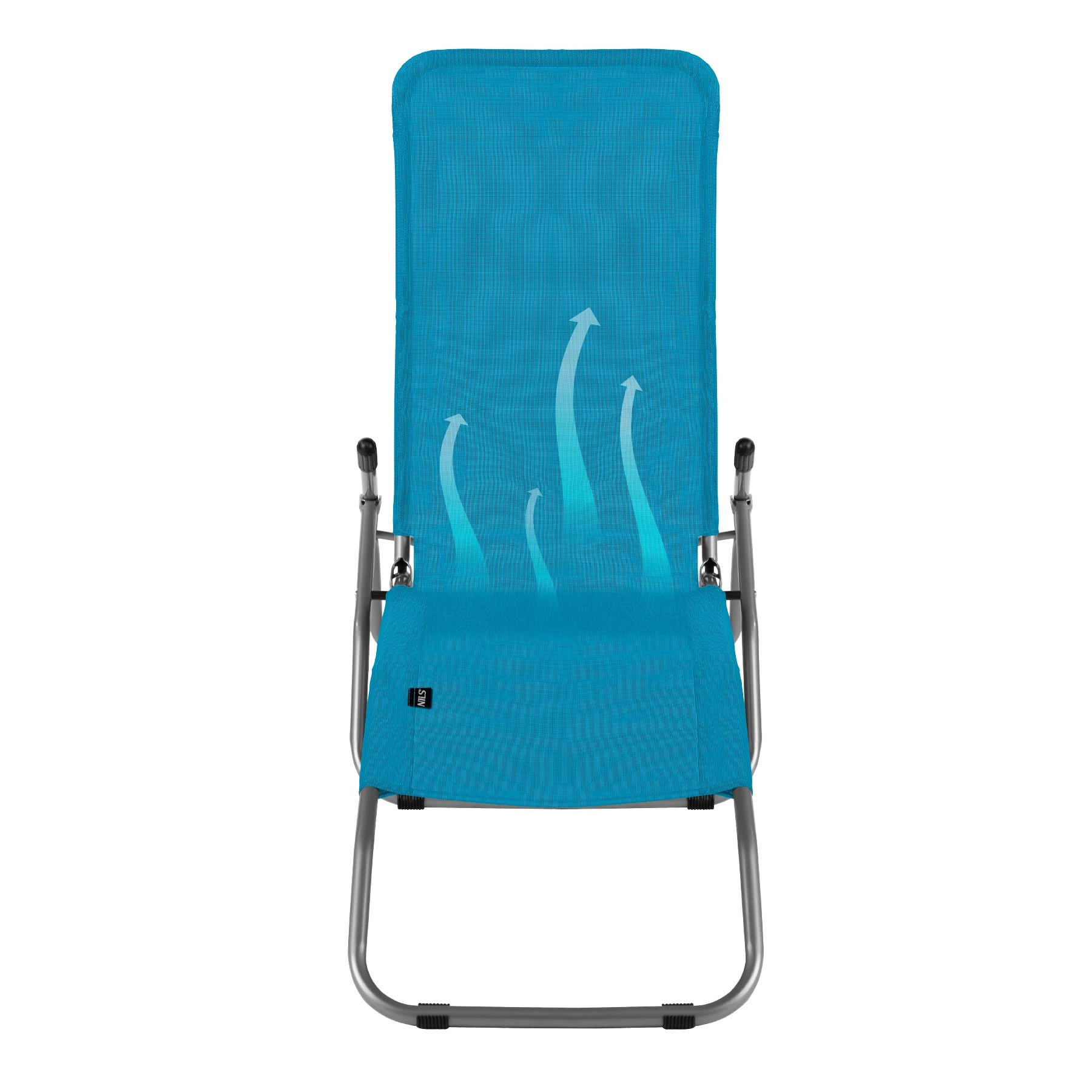 A légáteresztő anyagszerkezetnek köszönhetően a nyugágyon a legforróbb napokon is kényelmes a pihenés. A pozíció könnyedén módosítható a súlypont fokozatmentes áthelyezésével – kattanások, reteszelések és egyéb mechanizmusok nélkül. A hátsó támasz megóv a túlzott hátradőléstől a biztonságos használat érdekében.