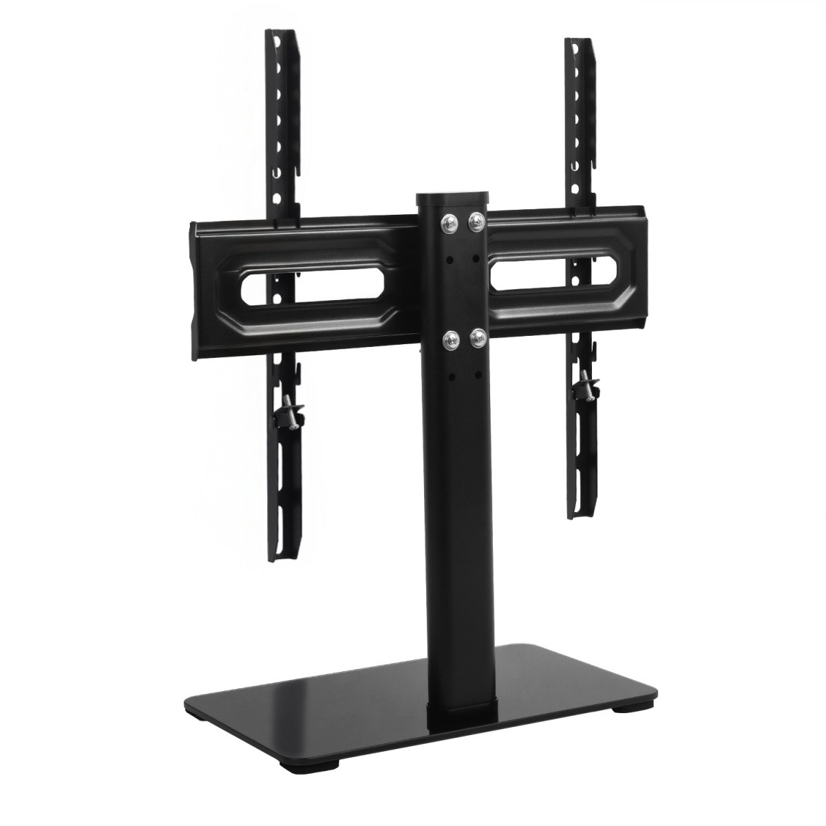 Az asztali TV-állvány letisztult dizájnt ötvöz masszív felépítéssel, így a televízió biztonságosan áll bármelyik TV-szekrényen. A magasságban/szögben állítható tartó VESA furattávolságokkal garantálja az egyszerű szerelést és a kiváló illeszkedést olyan márkák különböző modelljeihez, mint a SONY, LG, SAMSUNG, PHILIPS, SHARP, PANASONIC, TOSHIBA, TCL, XIAOMI, JVC és mások.