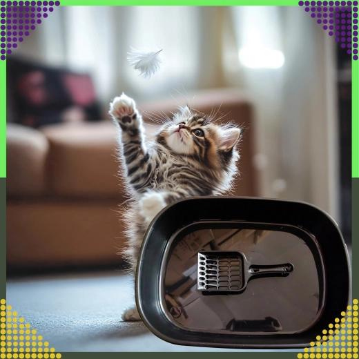 A csomag tartalmaz egy masszív lapátot résekkel, amelyek lehetővé teszik a rögök és szennyeződések gyors eltávolítását az alom pazarlása nélkül.