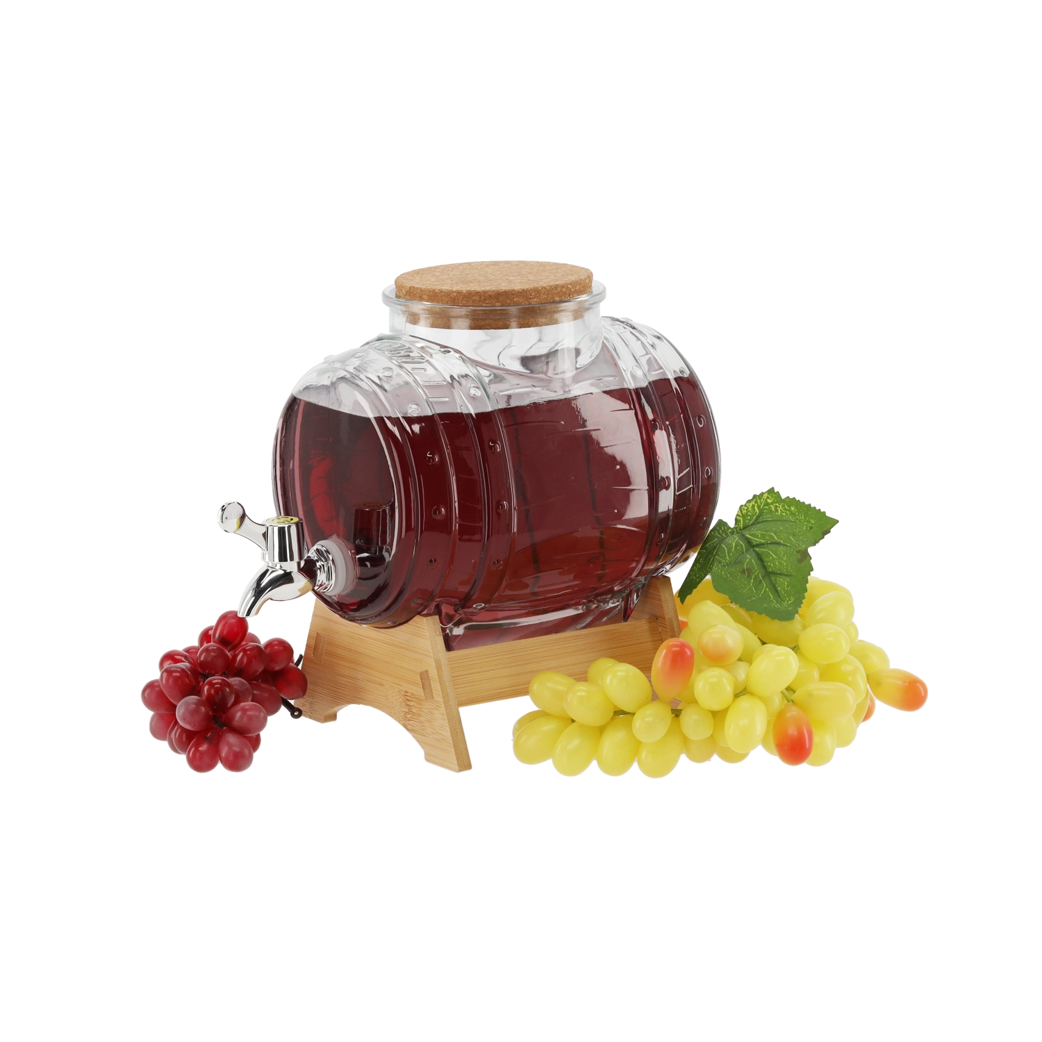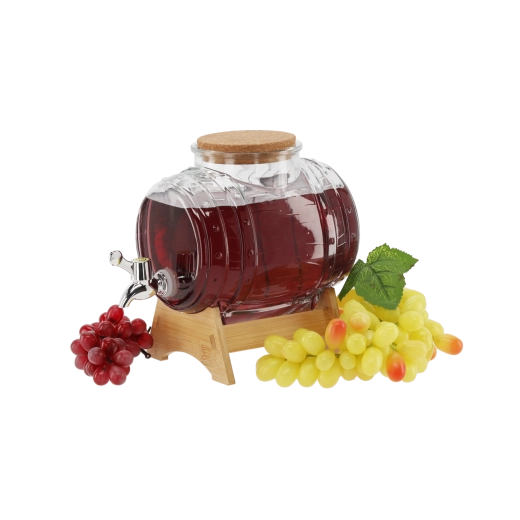 Stílusos, 3 l űrtartalmú italadagoló széles szájjal a könnyű töltéshez és tisztításhoz, műanyag csappal a kényelmes csapoláshoz kifröccsenés nélkül, valamint bambusz állvánnyal a stabil elhelyezéshez és a magasabb poharak kényelmes megtöltéséhez. Ideális limonádékhoz, gyümölcslevekhez, puncsokhoz és házi likőrökhöz – praktikus segítőtárs és design kiegészítő minden ünnepséghez.