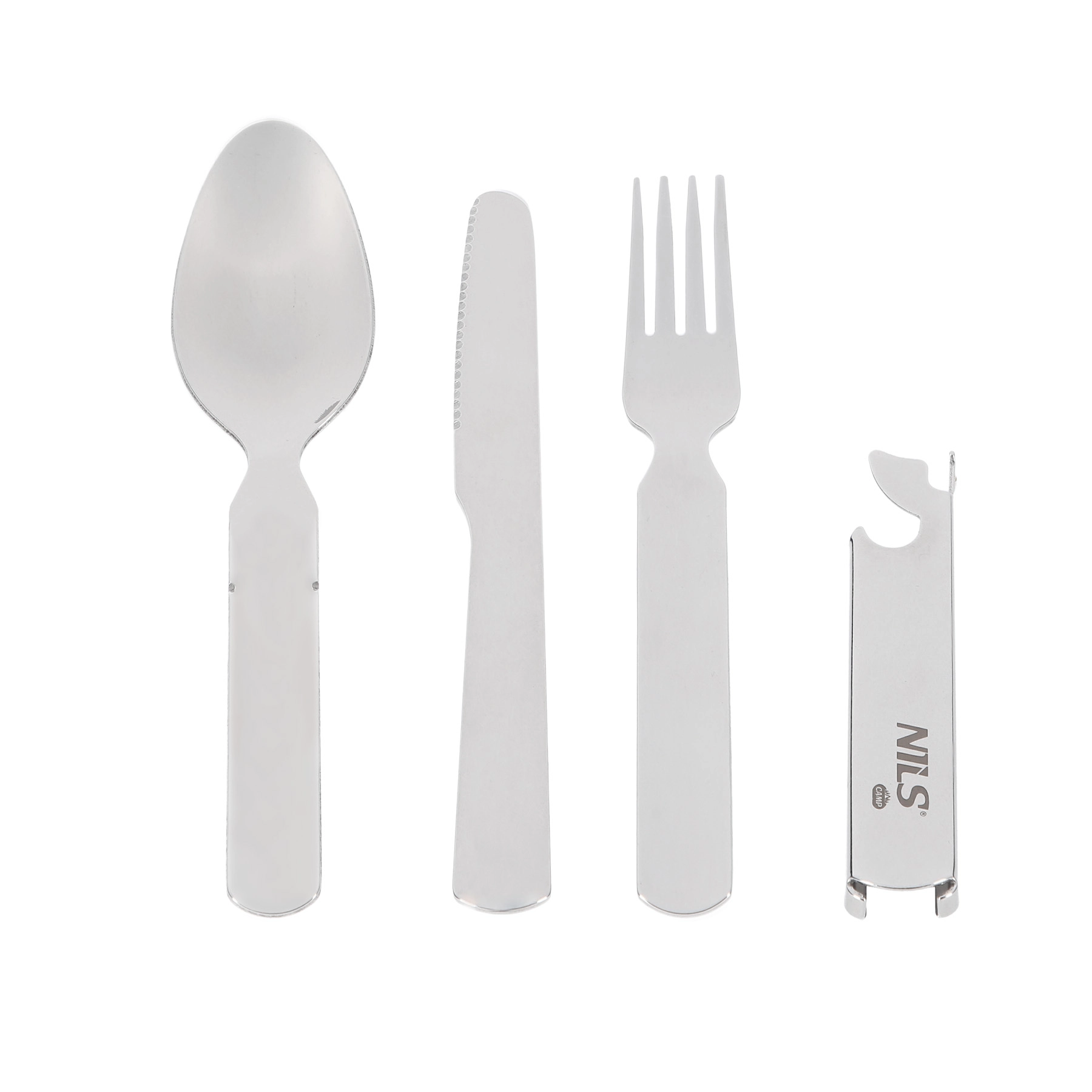 A készlet mindent tartalmaz a kényelmes szabadtéri étkezéshez: kanalat, villát, fűrészfogú élű kést a könnyű szeleteléshez, valamint egy multifunkciós palacknyitót. A kompakt méretek és az alacsony tömeg ideálissá teszik kempinghez, kiránduláshoz, túrázáshoz és utazáshoz.
