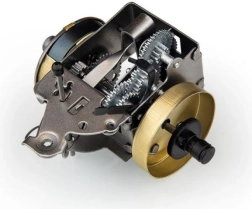 Egyedi, rugós felhúzós szerkezet váltóval: 3 előre fokozat, üres és hátra, élethű haladáshoz és elemek nélküli szórakozáshoz.